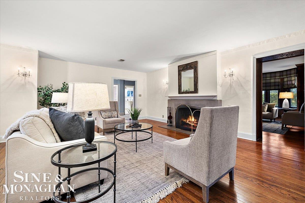 For nearly 40 years, this cherished home has been lovingly maintained by the same owners, reflecting care, attention, and timeless style. Perfectly positioned just two blocks from the lake, it offers unparalleled access to schools, The Hill, local shops, restaurants, the library, a grocery store, and a welcoming church—all within easy walking distance. Inside, a bright, modern white kitchen anchors the home, flowing seamlessly to the dining room, which showcases exquisite millwork and refined crown moldings. The living room radiates warmth with elegant crown detailing and a stately stone fireplace; while an extraordinary paneled library/family room with a hidden liquor cabinet serves as a private retreat for relaxation or entertaining. Upstairs, six spacious bedrooms and four full baths provide comfort for family and guests. The primary suite features a luxurious updated ensuite with a soaking tub and separate shower, while additional baths are either updated or in pristine condition. Service stairs connect directly to the kitchen, making household routines effortless. A partially finished basement adds versatile living space, complete with a fireplace that enhances both ambiance and coziness. Outdoors, the backyard offers a serene setting for entertaining or unwinding, complemented by an attached three-car garage and plentiful additional parking. Combining architectural elegance, modern amenities, and a premier, walkable location, this home is a rare opportunity to own a property that is both historically loved and move-in ready; where every detail reflects care, sophistication, and enduring style.