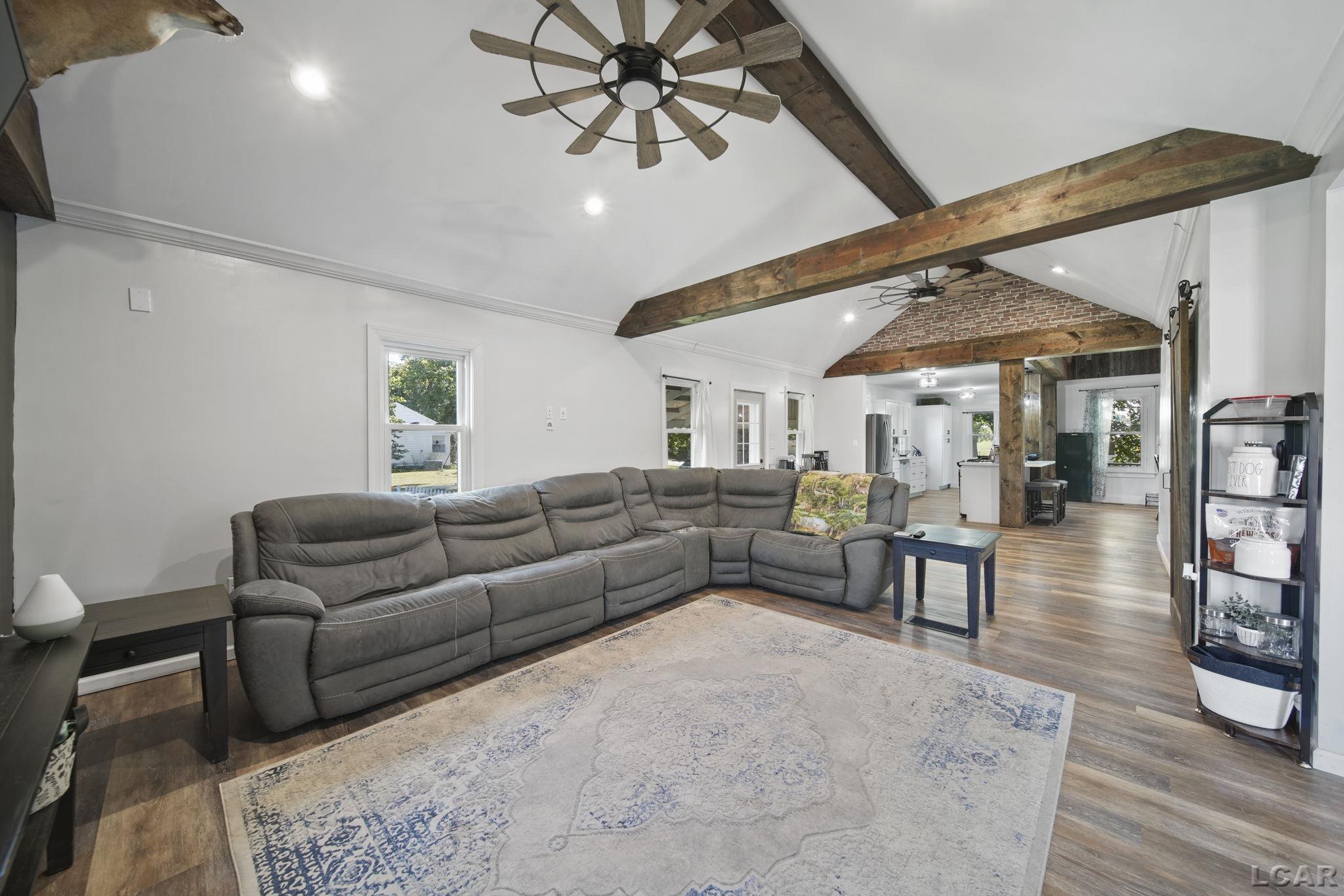 Welcome home to a stunning farmhouse sitting on 47.79 acres in Madison Township! Included with the sale is a .79 subdivision lot located off of Allan St. This additional lot allows access to the community engagements, like the Madison community parade, reduced traffic for a safe place to ride bikes, visit friends, trick or treating and more! It's the best of both worlds! The other 47 acres are versatile for anything you need with prime hunting opportunities, great farmland possibilities, room for nature trails, space to house livestock, the list goes on, and the possibilities are endless! The home has been beautifully renovated from top to bottom, with a newer roof, well, A/C, windows, flooring, cabinets, appliances, and more! The vaulted ceilings, and wood beams add to the old farmhouse charm! Outside offers a 2-car garage with a lean-to, fenced yard, and trails to the back private pond! Don't miss out on your chance to own a one-of-a-kind secluded paradise!
