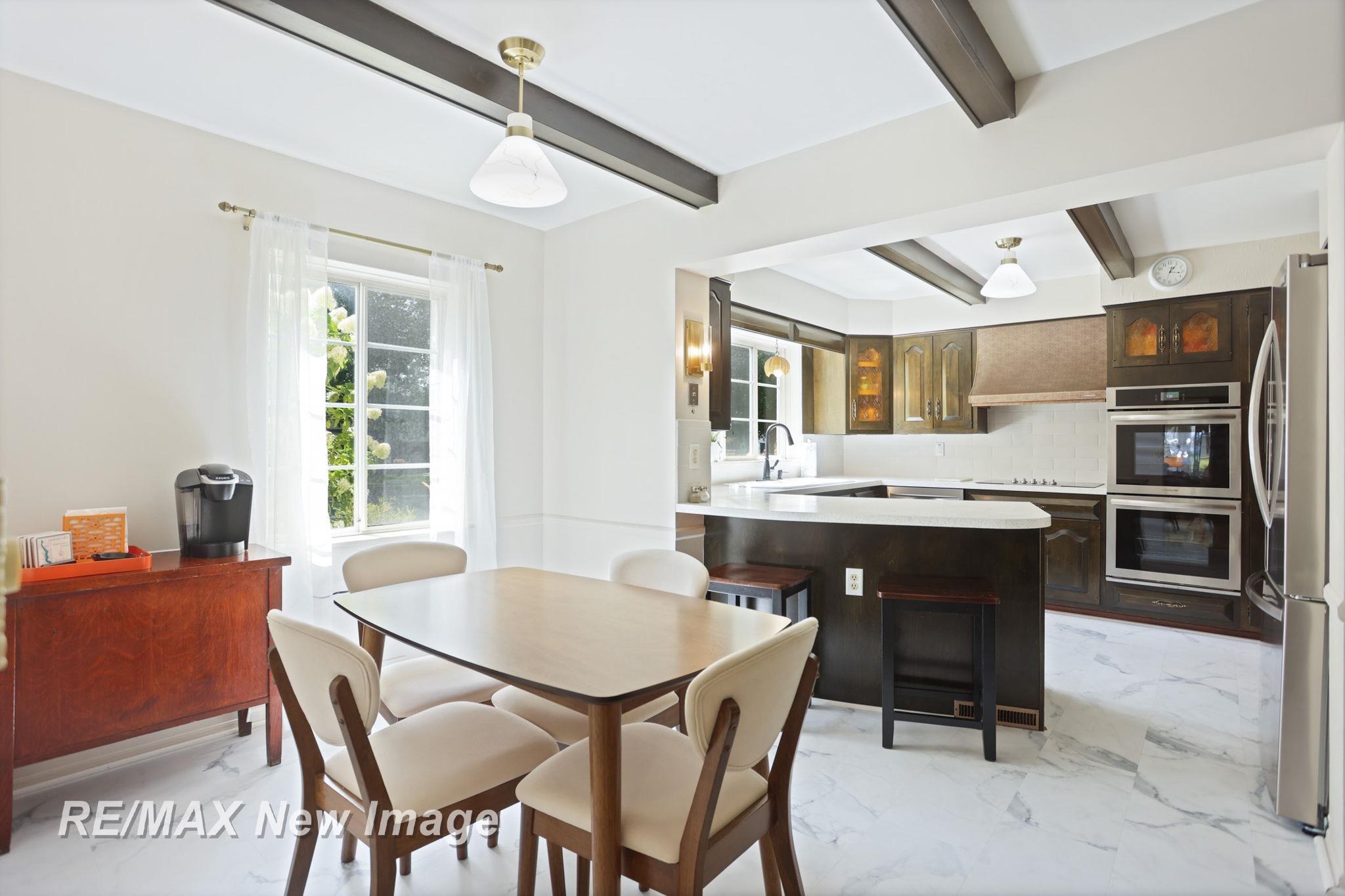 Nurmi-built mid-century home with art deco flair in Bay City's Historic District! Offering 4 bedrooms, 3.5 baths, and nearly 2,900 sq ft above grade plus a partially finished basement. Hardwood, slate, and new Life Proof flooring throughout. Updated kitchen with stainless appliances, double wall oven, counters & backsplash. Formal dining with new picture window, 3-season sun porch, and main-floor laundry. Basement features retro wet bar, multi-door fridge & fireplace. Central air, electrical updates, 2-car garage, and fenced yard. Walking distance to downtown, riverfront, shops & parks. A rare blend of historic charm and modern updates!