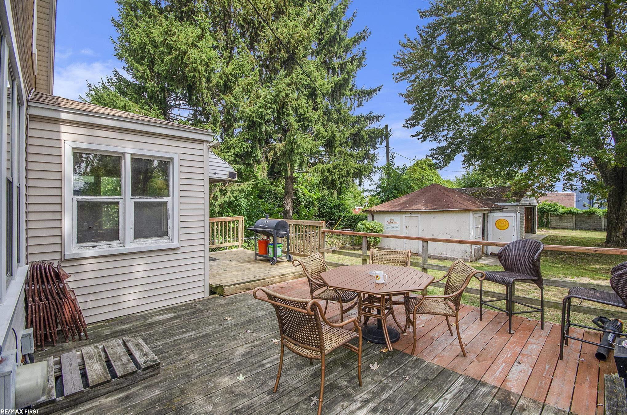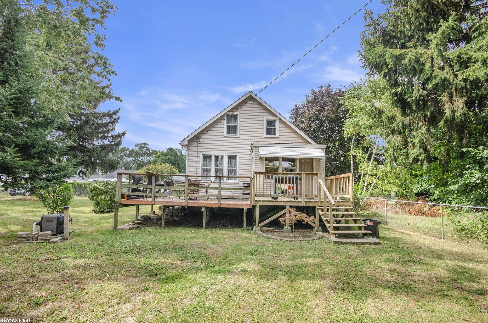 Step back in time while enjoying modern comforts in this charming two-story home, built in 1920 & set on an oversized 106x173 double lot. From the moment you arrive, the curb appeal & preserved character of this property will capture your attention. Inside, much of the original craftsmanship remains: hardwood floors, classic kitchen cabinetry and countertops,& several leaded glass doors add warmth and authenticity. The front entryway features a welcoming bench with space for coats and shoes, while the rear offers a cozy knotty pine sunroom/mudroom that opens to a spacious two-tiered wood deck—ideal for gatherings or quiet mornings. The main level provides a thoughtful layout with a kitchen, dining room, living room, lavatory, den/office, and wide hallway. Upstairs, you’ll find three bedrooms and a full bath, each room reflecting the charm of a bygone era. Practical updates blend seamlessly with the home’s history: a 3-dimensional shingled roof, vinyl replacement windows (with original wood windows preserved in several rooms), updated gas forced-air furnace with central air, copper plumbing, circuit breaker electrical, basement glass block windows, and a 50-gallon gas hot water heater. Outside, parking and storage are abundant with the original one-car garage plus an oversized two-car garage. The large lot offers plenty of space for gardening, recreation, or expansion. This home is a rare find for buyers who appreciate character, history, and craftsmanship, with the benefit of modern upgrades.