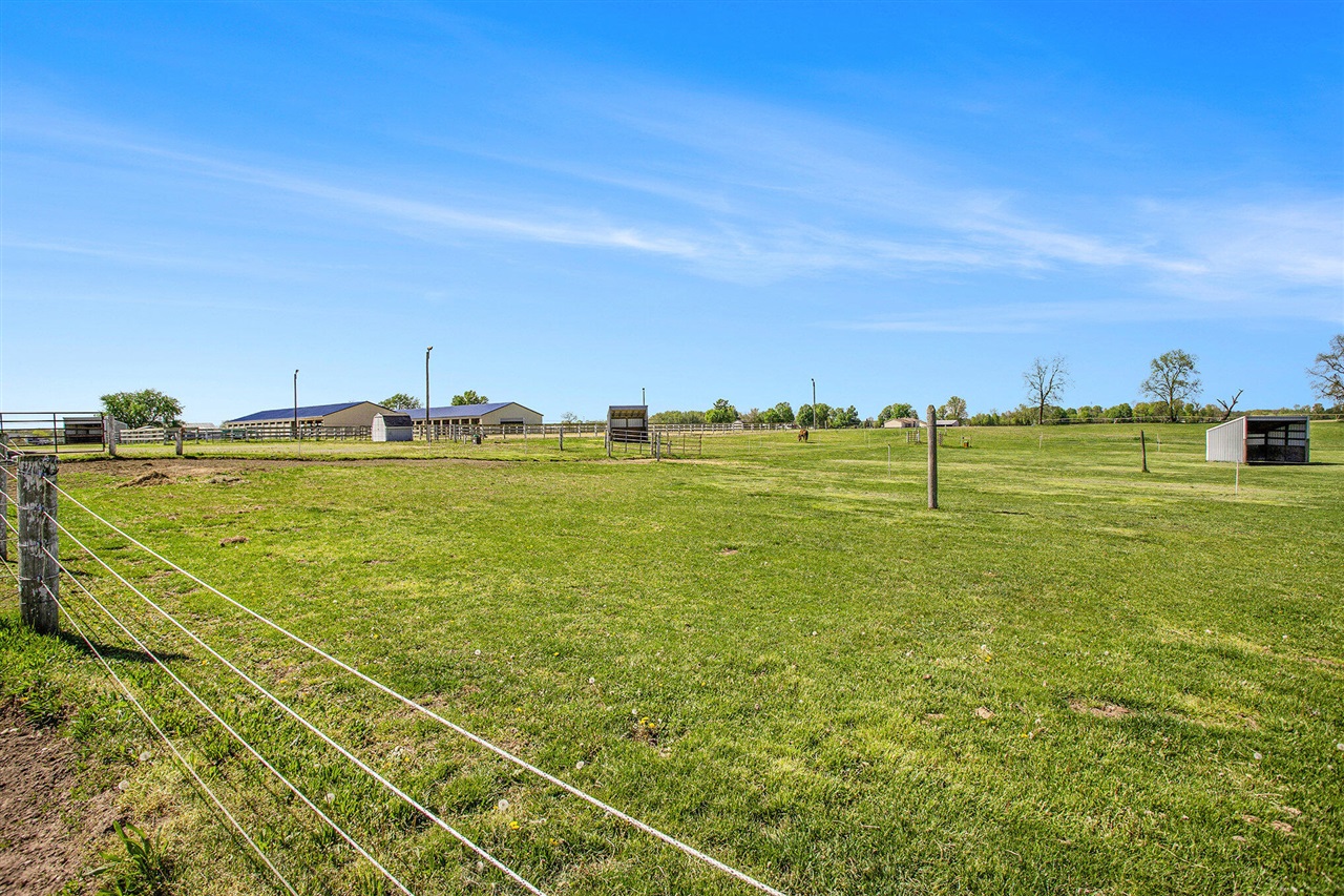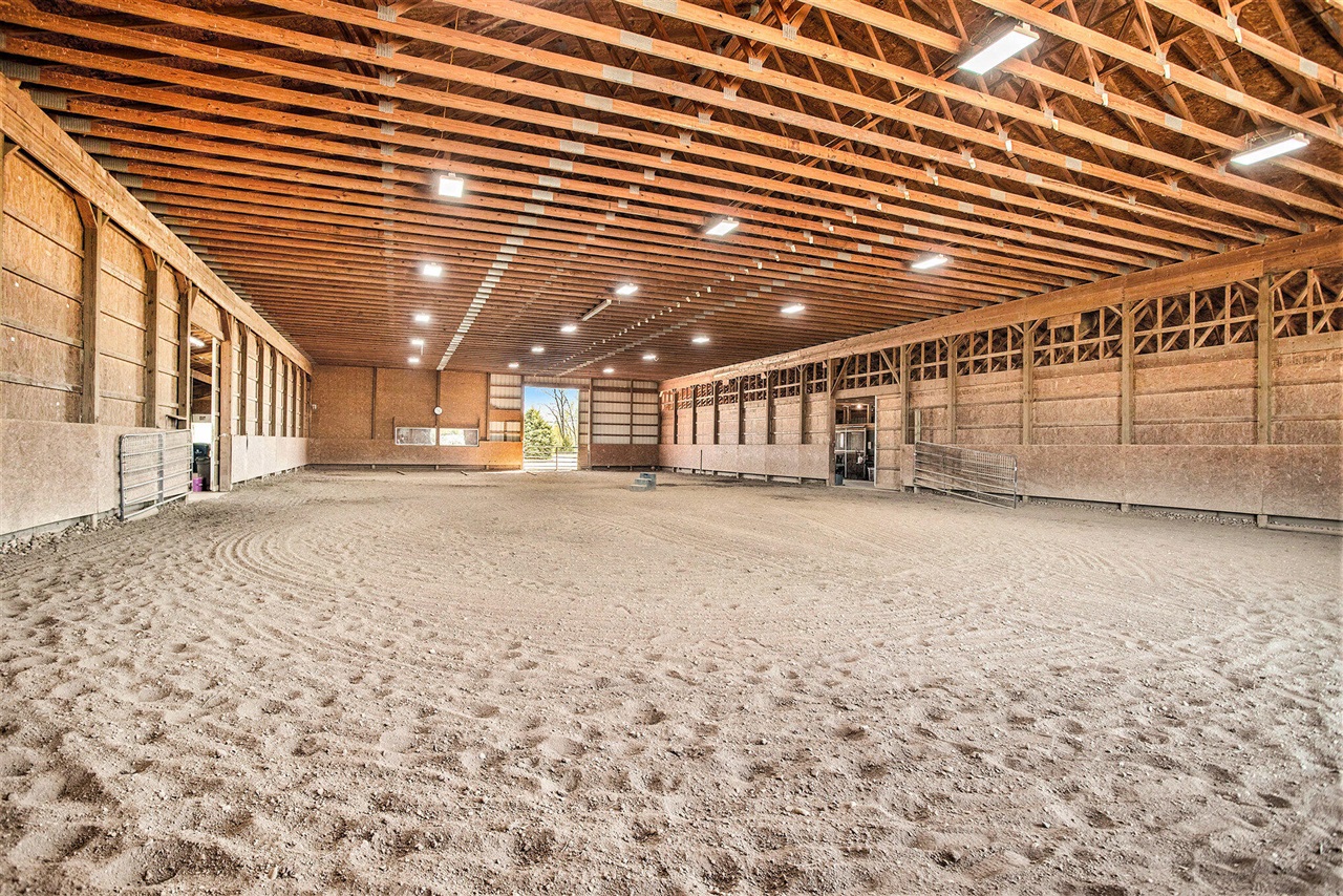 Experience the ultimate equestrian lifestyle at this exceptional horse ranch! Featuring a 60'x120' indoor riding arena, 11 indoor stalls, and a horse washing station, it's a dream setup for horse enthusiasts. Multiple fenced pastures and run-in shelters provide ideal conditions for your herd. A heated 5-car detached garage offers ample space for vehicles and equipment. Enjoy cozy, comfortable living in the 1,000 sq. ft. quarters, complete with a stunning stone fireplace and an open kitchen/living layout perfect for relaxing after a day with the horses. This is country living at its finest!
