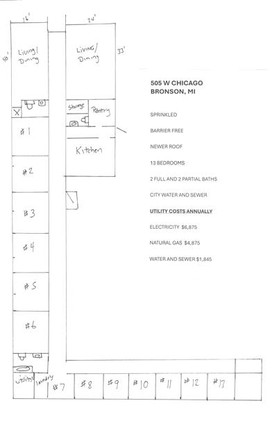 505 w chicago street has 13 bedrooms, 5 bathrooms, and approximately 6,980 square feet. This home is in the bronson community school district school district and has a lot size of 132x242.4x153.3x211 with 0.73 acres and was built in 1960. 505 w chicago street is in the 49028 ZIP Code area of bronson.