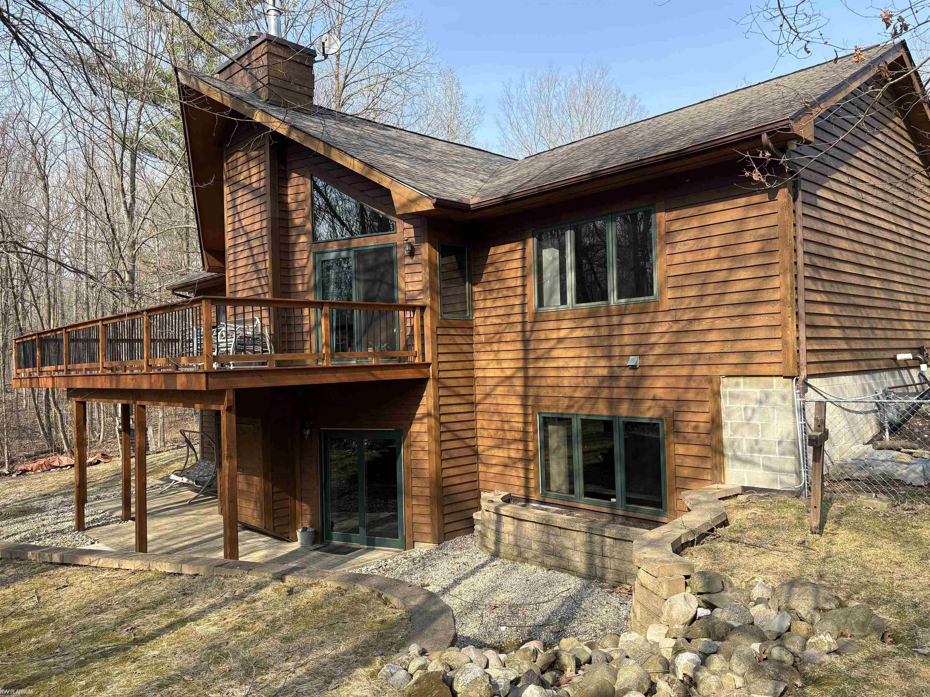 Set on over 7 wooded acres that backs state land, this custom home offers a rare sense of privacy and connection with nature. 3 beds and 3 baths with capability for a 4th in the basement. With more than 4,000 square feet of finished space, the home features vaulted ceilings, newer furnace and central air, vaulted ceilings and a beautiful gas fireplace that serves as a warm focal point. A finished walkout lower level expands the living space, while a winding creek and woods create a serene backdrop.There's also 24' x 36' heated workshop. A home security system and Generac whole home generator adds additional functionality and peace of mind. It's your own private retreat just minutes away from the lake. Schedule your appointment today.