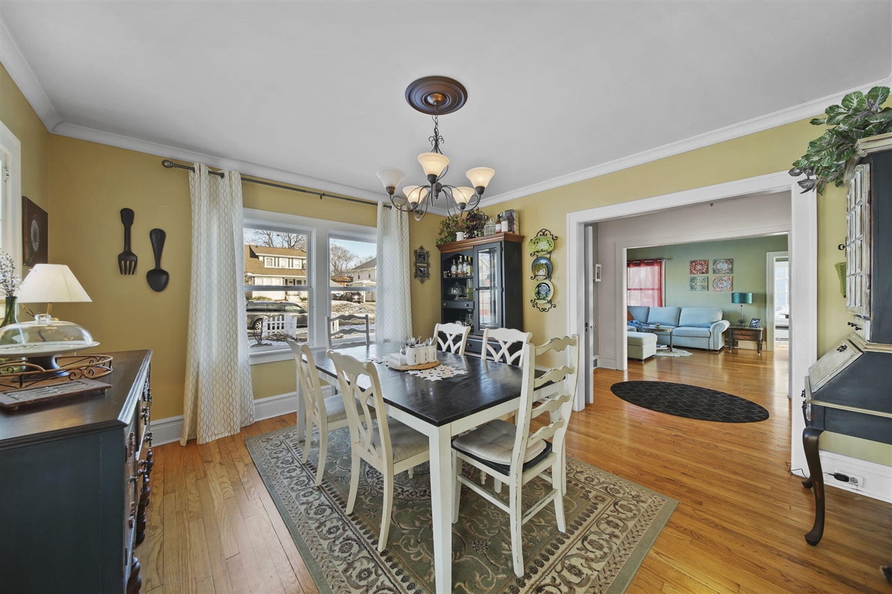 Step into timeless elegance with this beautiful 4 BR, 2 BA Colonial, perfectly situated in a highly desirable location. From the moment you enter the gracious foyer, you'll be captivated by the staircase, crown moldings, and rich hardwood floors that flow throughout the home. The spacious kitchen features granite countertops & abundant cabinetry, a formal dining room overlooking the inviting living room with a cozy gas fireplace, creating a warm & refined atmosphere. A sun-drenched sunroom with built-ins provides the perfect retreat for morning coffee or evening relaxation, while a main-level full bath adds everyday convenience. Upstairs, you'll find four generously sized bedrooms & a full bath, along with a walk-up attic offering endless storage. Additional highlights include a charming balcony, open side porch, front porch, fenced backyard, and a 3-car garage. This home beautifully blends classic architectural details with comfort, space and undeniable charm.